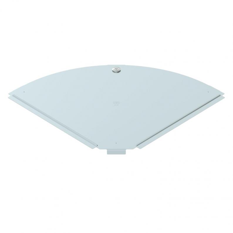 Cover for 90° bend fitting for lockable and screw-on cable trays in indoor and outdoor areas, to protect cables against damage and soiling. Fastening with pre-mounted sash lock and through attachment of the section cover. Suitable for all side heights.