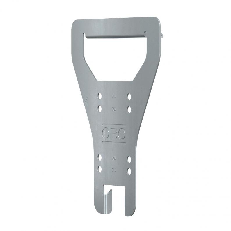 Alternatively, the cover lifter can be used as a template for the connector perforation with cable trays cut during construction. For this, turn the cover lifter through 180° and position on the cable tray. Then use the perforation template appropriate to the side height.