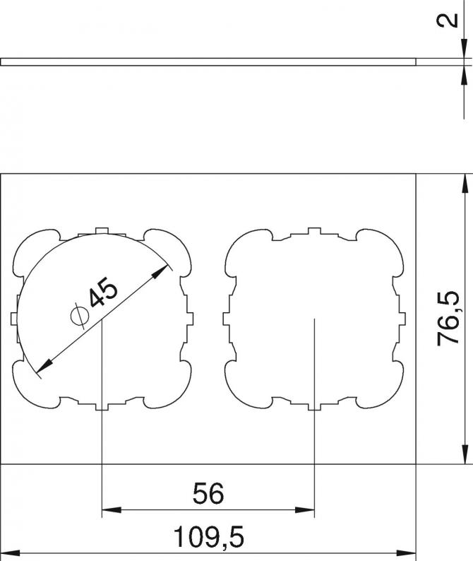 Cover plate with 2 perforations (Ø 45 mm) for two accessories with support clamp (EK version), suitable for T4B lengthwise side (1/2 cover).