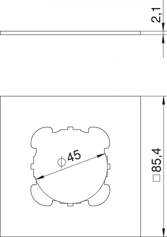 Cover plate with 1 perforation (Ø 45 mm) for one accessory with support ring, suitable for T4L and T8NL narrow side.