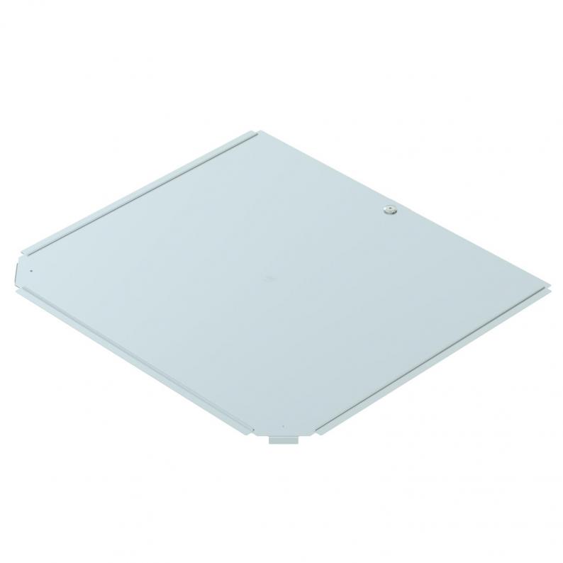 Cover for T piece fitting for lockable and screw-on cable trays in indoor areas, to protect cables against damage and soiling. Fastening with pre-mounted sash lock and through attachment of the section cover. Suitable for all side heights.