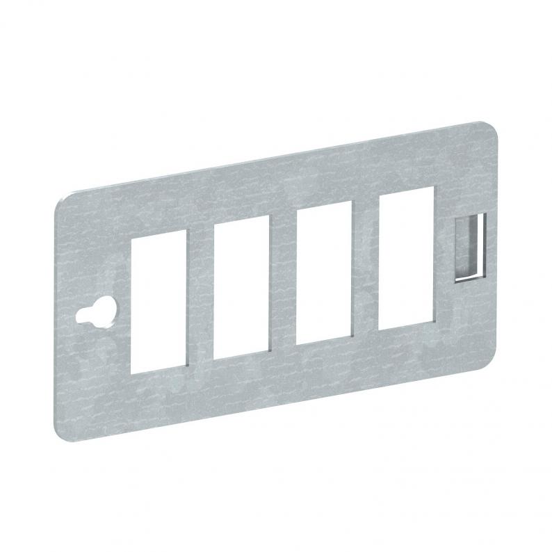 Support plate to accept four snap-In connectors, 3-pole, in a Consolidation Point housing.