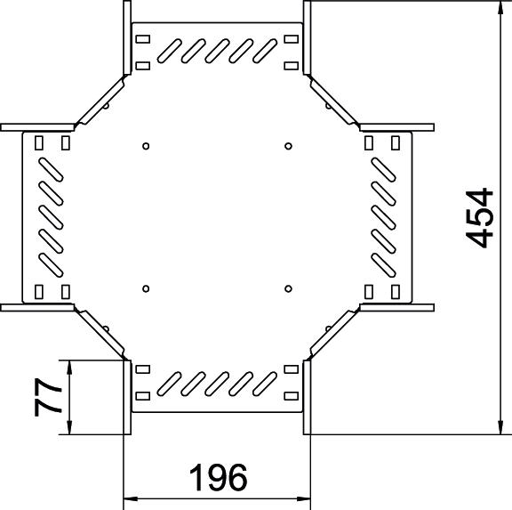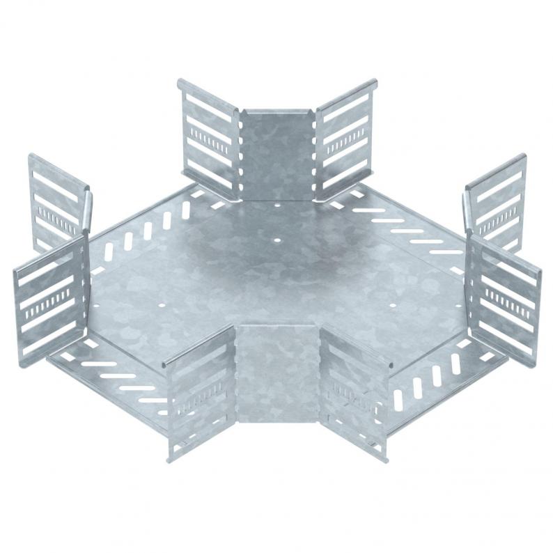 Cross-over for the creation of a horizontal branch, fitting for lock and screw-on cable trays of side height 110 mm. Screwless mounting with double clamps or screw connection with FRS truss-head screws and M6 combination nuts. Can be used indoors and outdoors. Fastening material must be ordered separately.
