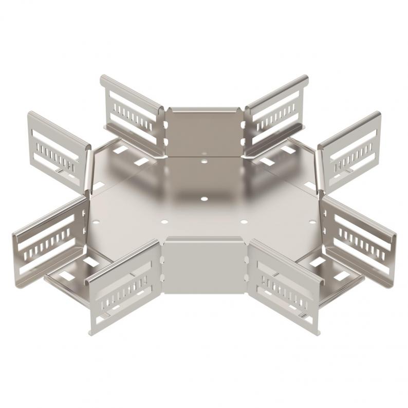 Cross-over for the creation of a horizontal branch, fitting for lock and screw-on cable trays of side height 60 mm. Screwless mounting with double clamps or screw connection with FRS truss-head screws and M6 combination nut. Can be used indoors and outdoors. Fastening material must be ordered separately.