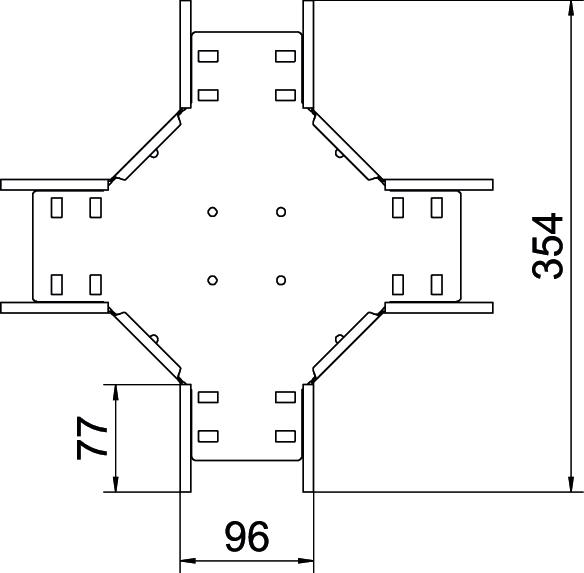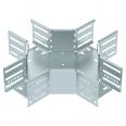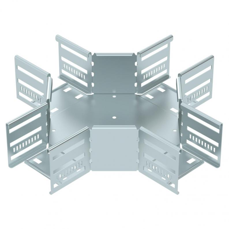 Cross-over for the creation of a horizontal branch, fitting for lock and screw-on cable trays of side height 85 mm. Screwless mounting with double clamps or screw connection with FRS truss-head screws and M6 combination nuts. Can be used in indoor areas. Fastening material must be ordered separately.