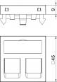Data technology support with straight outlet and without a locking slider to accept two data technology connection modules with RJ45 socket. The locking fastening is suitable for horizontal and vertical installation in the system environment. Type C has a mounting opening of 19.30 x 14.80 mm and is designed for direct fastening of the data connection modules in the mounting opening.