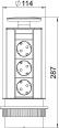 Lowerable Deskbox with connection cable for fixed installation on a tabletop, plastic fastening sleeve, painted accordingly in cover shade. It is mounted using a drill hole (Ø102 mm) in the tabletop.