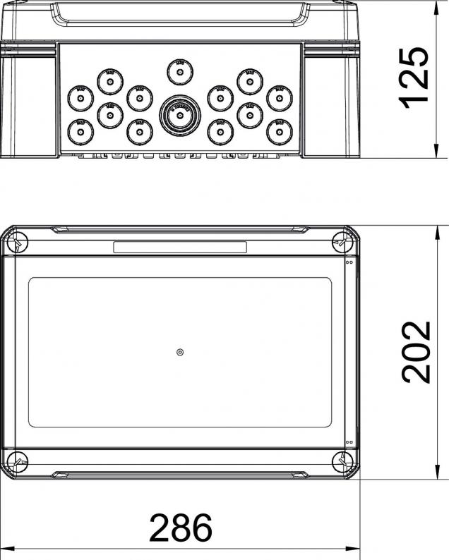 - 10 Ø 20 mm break-out openings each at the top and bottom