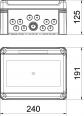 Distribution box for surface mounting, for the current sub-distribution in interior and protected exterior areas, in accordance with IEC 439-3. With pre-mounted 35 mm hat profile rail. IP66 protection type and IK07 protection rating. Transparent cover to screw on, with cut-out.