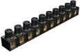 Pirinç klemensler, çelik vidalar, elektro galvaniz kaplama ve pasifize edilmiş, 10 kutup, tekli klemenslere ayrılabilir sıra klemens, her iki tarafı açık.