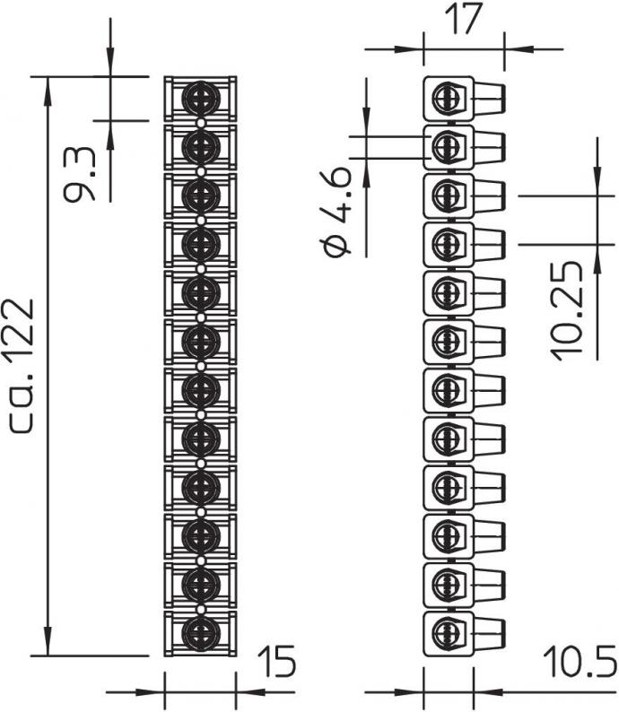 Dolü branch terminals, open on both sides, 12-pole