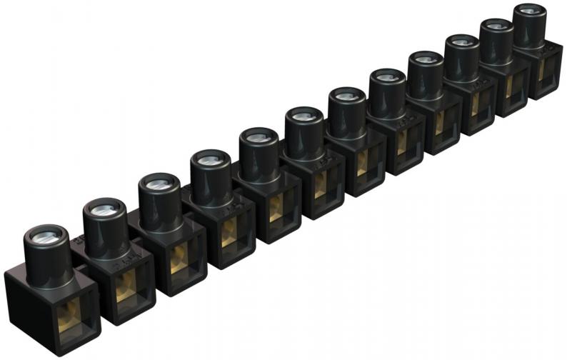 Pirinç klemensler, çelik vidalar, elektro galvaniz kaplama ve pasifize edilmiş, 12 kutup, tekli klemenslere ayrılabilir sıra klemens, sadece tek tarafı açık. Tek tarafı kapalı. Vidalar takılıdır, kaybedilmez.
