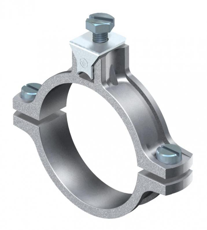 from galvanised steel, top and bottom part of clamp from die-cast zinc