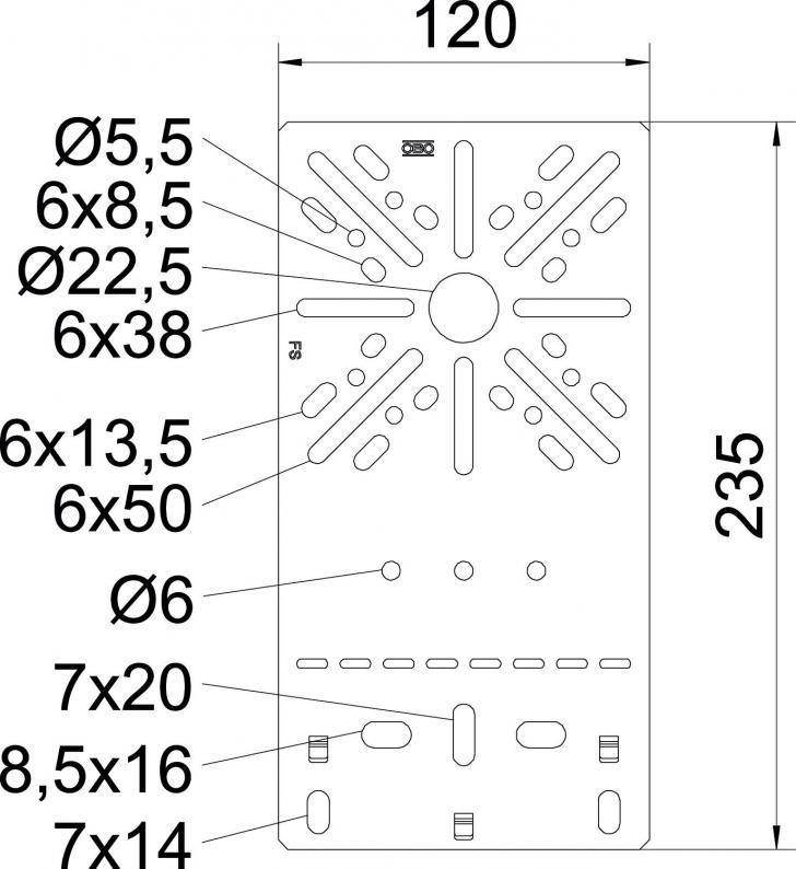 Flat mounting plate, for fastening on the side rail of the cable tray.