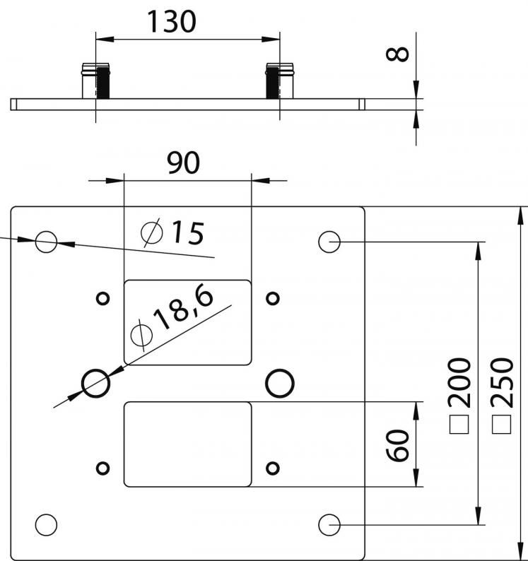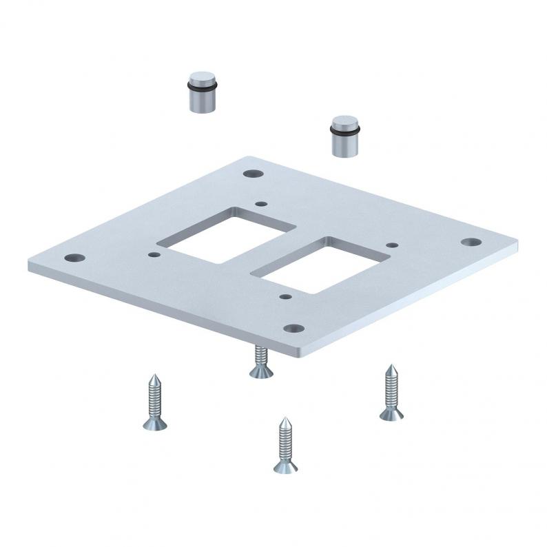 Plate to fasten the ISS industrial pole to the floor. The scope of delivery comprises of four fastening screws to mount the floor plate onto the pole profile and two sealing plugs to make the compressed air channels airtight.