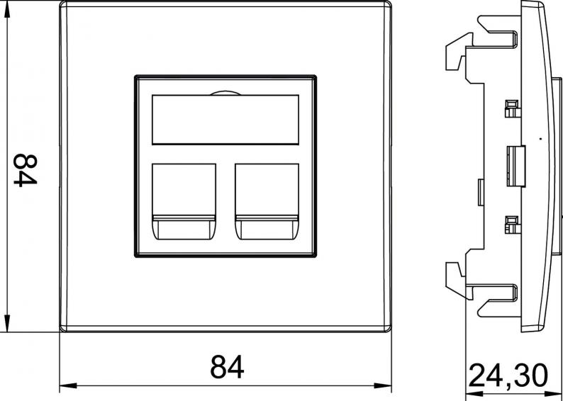 Installation unit to accommodate two type A data technology modules, suitable for installation in Rapid 80 device installation trunking systems and ISS service poles. The type A data technology support is suitable for accepting the following data connection modules: AMP TYCO (without dust protection cap): SL Series 110Connect and SL Series Toolless; Brand-Rex: modules with item numbers ending in …JAKS000CR and …JAKU002; Nexans: LANmark RJ45 with blue adapter clip, LANmark GG45 with metal clip.