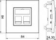 Installation unit to accommodate two type RM data technology modules, suitable for installation in Rapid 80 device installation trunking systems and ISS service poles. The type RM data technology support is suitable for accepting the following data connection modules: OBO (type): ASM-C5, ASM-C5 G, ASM-C6 and ASM-C6 G; R&M: Cat. 5 and Cat. 6 modules without support plate.