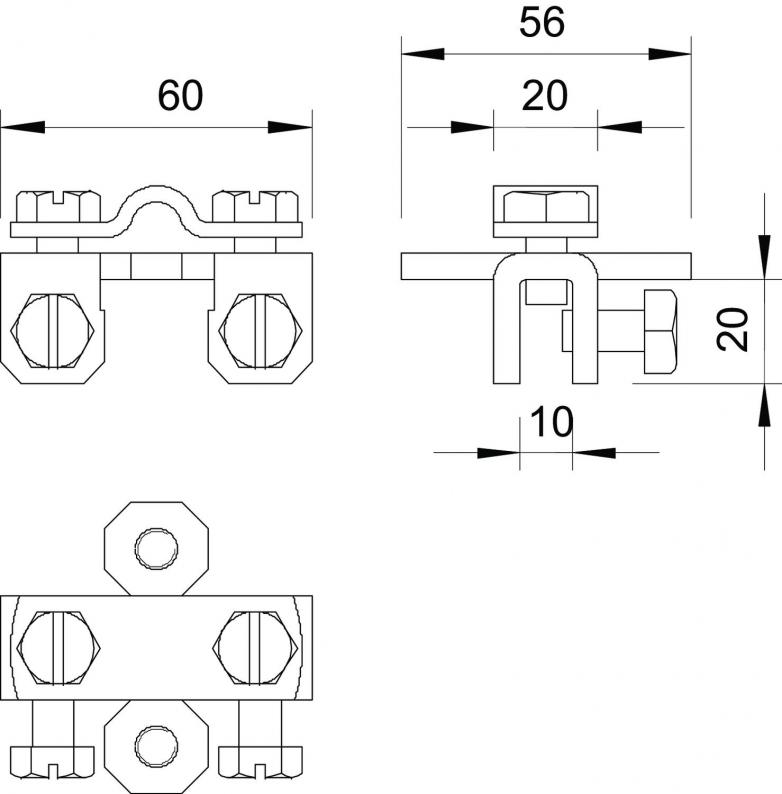 • Conductor routing transverse and longitudinal to plate with 2 hexagonal bolts M8 x 10 and 2 hexagonal bolts M8 x 16 (F)