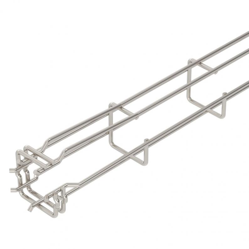 G-shaped mesh cable tray made of spot-welded steel wire with different side heights and widths.