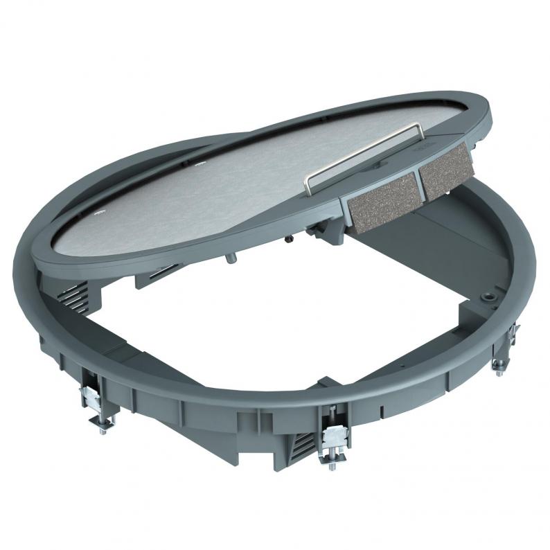 GESR9 service outlet with carpet protection frame in hinged cover