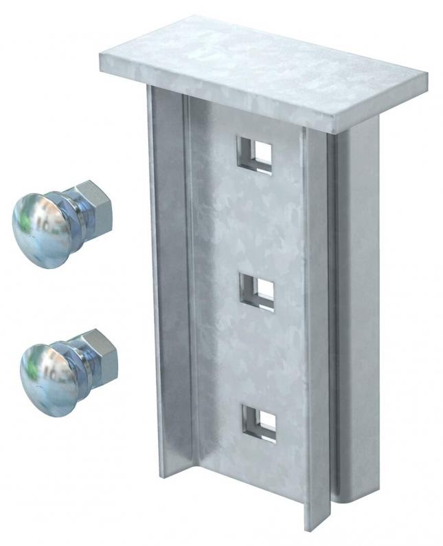 The head plate can be mounted to fixed lengths of the I support, type IS 8. The head plate is fixed to the support using two truss-head bolts, type FRS M10 x 25, which must be ordered separately.