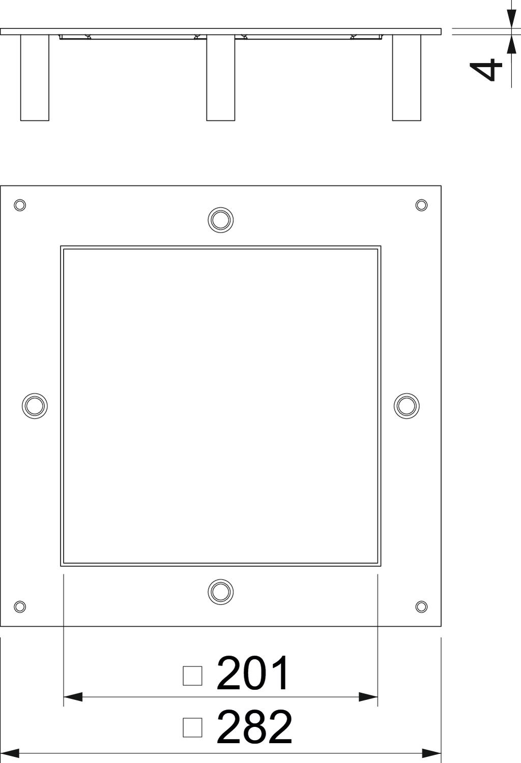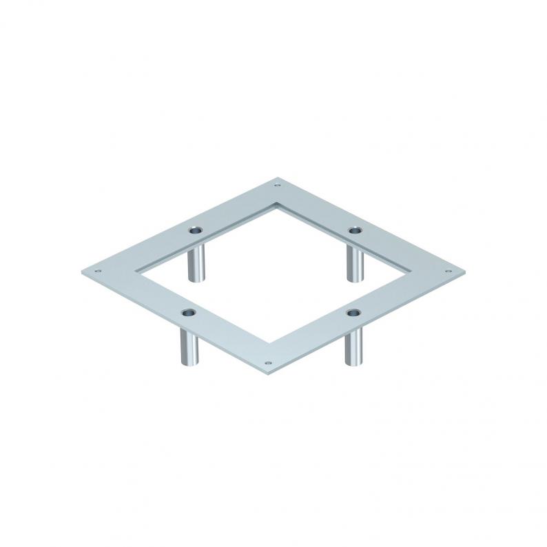 The heavy-duty mounting lid for the type UZD250 underfloor box is suitable for installation in a square heavy-duty cassette of nominal size 4. The installation opening is recessed by 3 mm and can be closed subsequently by a lid blanking plate.