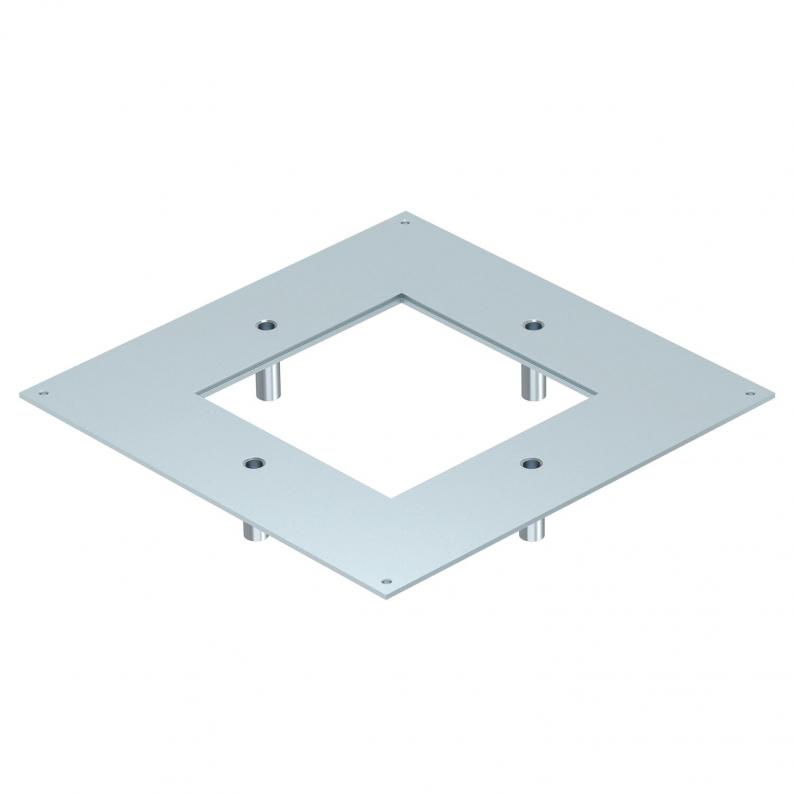 The heavy-duty mounting lid for the type UZD350 underfloor box is suitable for installation in a square heavy-duty cassette of nominal size 4. The installation opening is recessed by 3 mm and can be closed subsequently by a lid blanking plate.