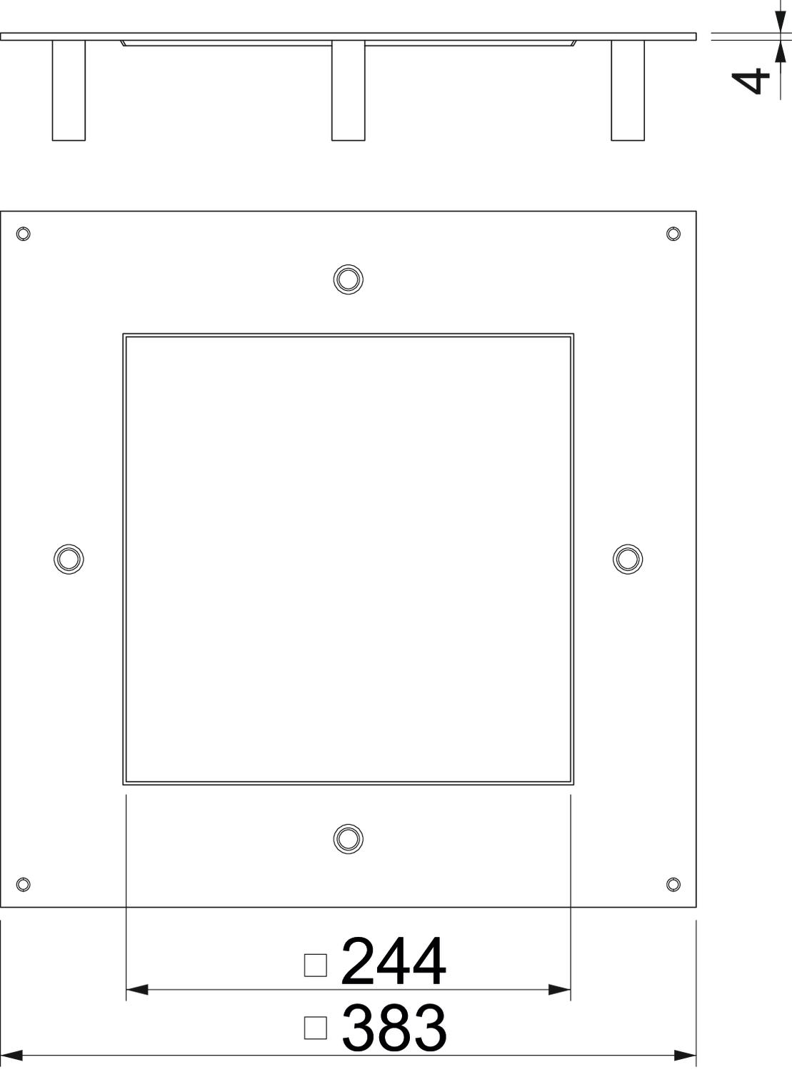 The heavy-duty mounting lid for the type UZD350 underfloor box is suitable for installation in a square heavy-duty cassette of nominal size 9. The installation opening is recessed by 3 mm and can be closed subsequently by a lid blanking plate.