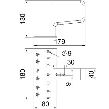 Heavy roof hook to mount photovoltaic modules on pitched roofs in combination with the TP 45 support profile. Suitable for tiled roofs. Fastening on support profile through bolt with hammer nut, type SKSHM A2. Mounting on rafters with TKS wafer-head screws.