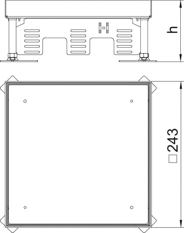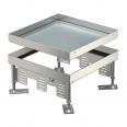Height-adjustable "blank" cassette for the creation of an inspection opening of nominal size 9 in dry or wet-cleaned floors for indoor use. Only suitable for smooth floor coverings.