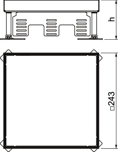 "Blank" height-adjustable cassette for the creation of an inspection opening of nominal size 4. Installation of devices in duct systems, raised and cavity floors in interior dry or wet-care floors. Only suitable for smooth floor coverings.