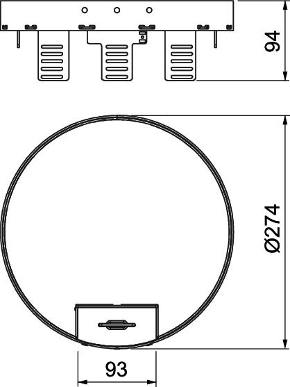 Height-adjustable cassette, decoupled from the floor, of nominal size R7, with cord outlet, for the installation of accessories in dry-cleaned floors for indoor use , for mounting in underfloor boxes UZD350-3, either in conjunction with a mounting lid DUG350-3R7 or UGD350-3R7. Mounting takes place using height adjustment brackets (order separately) in the aluminium frame profile of the underfloor boxes.