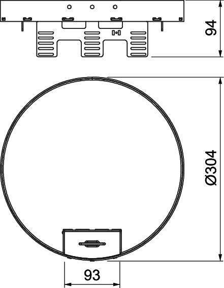 Height-adjustable cassette, decoupled from the floor, of nominal size R9, with cord outlet, for the installation of accessories in dry-cleaned floors for indoor use, for mounting in underfloor boxes UZD350-3, either in conjunction with a mounting lid DUG350-3R9 or UGD350-3R9. Mounting takes place using height adjustment brackets (order separately) in the aluminium frame profile of the underfloor boxes.