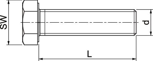 Hexagonal bolt according to DIN 933 with metric thread.