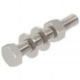 Hexagonal bolt for universal fastening of construction components. With hexagonal nut and 2 washers.