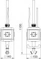 Housing equipped and prewired, with 1 m pipe 1/2" and connection for compressed air hose 13 x 3.5 mm and 2-way distributor 1/2", with suspension lug, grip hook and four cover plates.