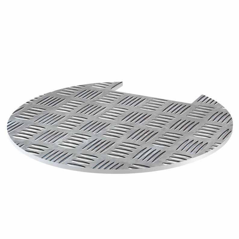 Inlay plate for surface-flush insertion in service outlets. Surface with quintet checker plate structure. Use in service outlet with 10 mm floor covering recess only in conjunction with the appropriate filler.