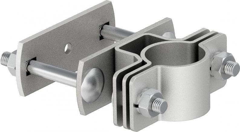 Fastening clip to fasten the insulated support pipes on the structure to be protected or for construction-side corner pipes of 50x50 mm.