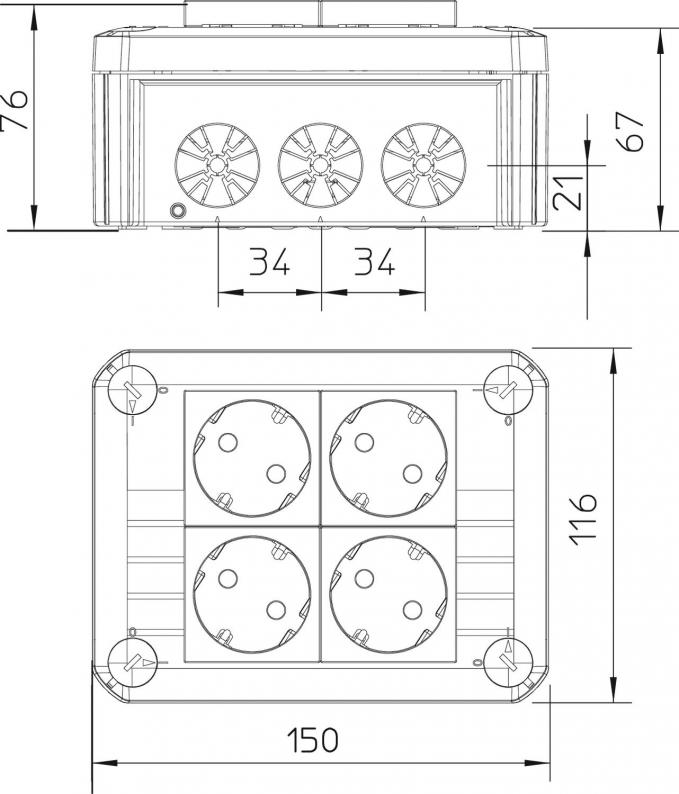 Junction box T100, 4 Modul 45 sockets in cover, 2-pin