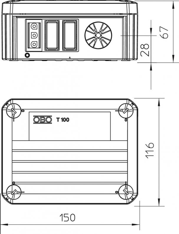 Junction box T100, with Wieland socket 1w3p+1s3p