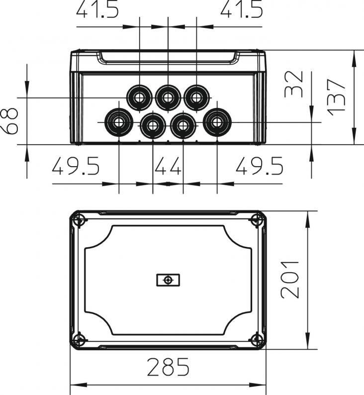 Termoplastik kablo dağıtım kutuları polipropilen veya polietilen malzemeden imal edilmiştir. Bu iki plastik de çok yumuşaktır ve böylece sadece belirli koşullarda kullanılabilmektedir. Kablolar, bir delme zımbası ile doğrudan duvardan geçirilerek monte edilebilir veya kablolar için geçiş deliği oluşturmak için duvarın öngörülen bir yerinde bıçak ile bir delik açılır.