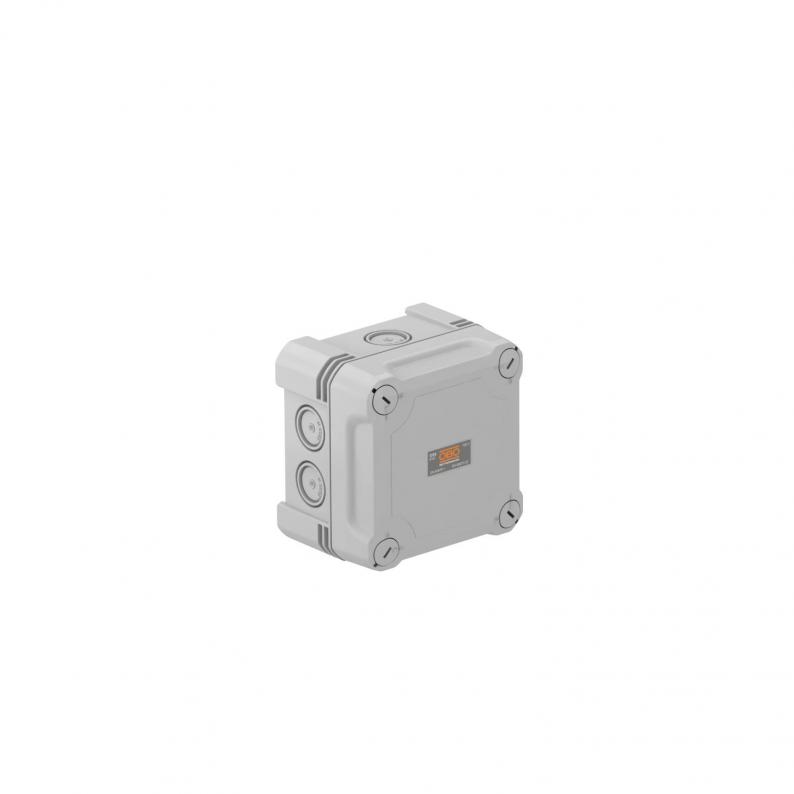 Junction box for the connection of cables and lines indoors and in outdoor areas. Square design with knock-out entries. Suitable for wall and ceiling mounting with the option to fasten outside, inside or to mount via the corner domes. Particularly impact resistant with IK09. Cover with quick lock, sealable. Made from halogen-free and UV-resistant materials.