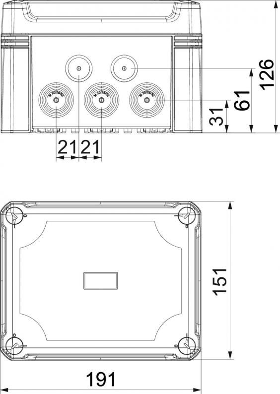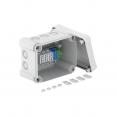 Junction box for the connection of cables and lines indoors and in outdoor areas. Rectangular design with knock-out entries. Suitable for wall and ceiling mounting with the option to fasten outside, inside or to mount via the corner domes. Particularly impact resistant with IK09. Cover with quick lock, sealable. Made from halogen-free and UV-resistant materials.