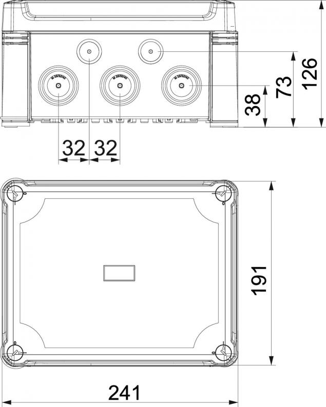 Junction box with hat profile rail for the connection of cables and lines indoors and in outdoor areas. Rectangular design with knock-out entries. Suitable for wall and ceiling mounting with the option to fasten outside, inside or to mount via the corner domes. Particularly impact resistant with IK09. Transparent cover with quick lock, sealable. Made from halogen-free and UV-resistant materials.