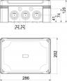 Junction box for the connection of cables and lines indoors and in outdoor areas. Rectangular design with knock-out entries. Suitable for wall and ceiling mounting with the option to fasten outside, inside or to mount via the corner domes. Particularly impact resistant with IK09. Cover with quick lock, sealable. Made from halogen-free and UV-resistant materials.