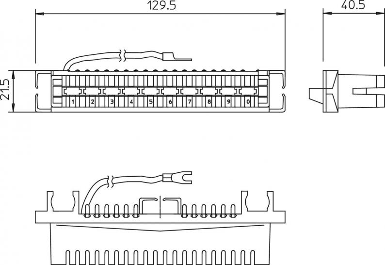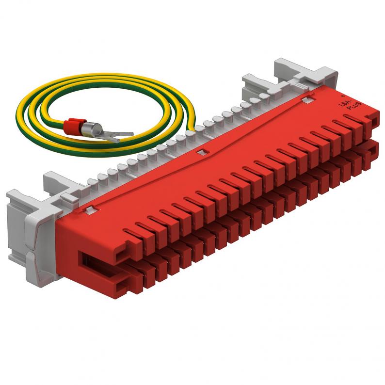 LSA earthing strip, 40-pole for connecting earthing cables or screens to the earth connection.