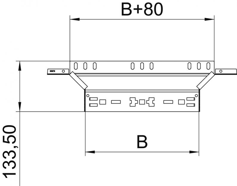 Add-on tee with quick connector system. For all cable tray types of 110 mm side height.