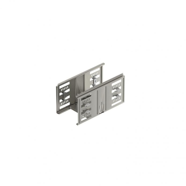 Cable tray connector with quick fastening for the screwless connection of perforated cable trays with a side height of 110 mm.
