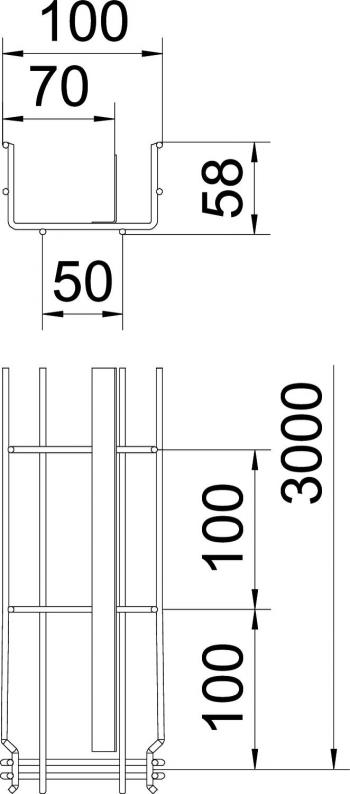 No additional connection components are required for the mesh cable tray, it is simply interlocked. The grid width is 50 x 100 mm.