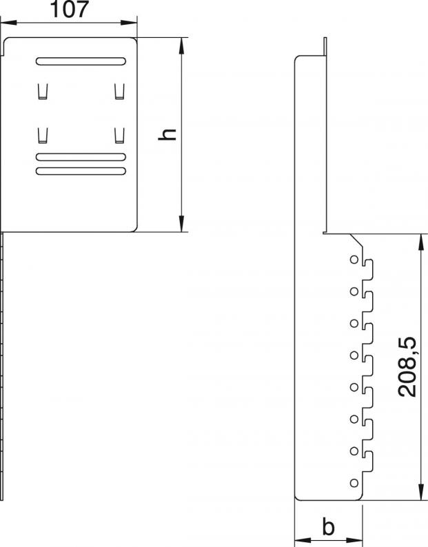 Mounting and connection profile for panel mounting of device installation trunking in conjunction with vertical convection grids. The installation and connection profile is locked onto the fixing panel and accepts the profile connector, type PVV/N2... vertically. Please observe the trunking dimensions.